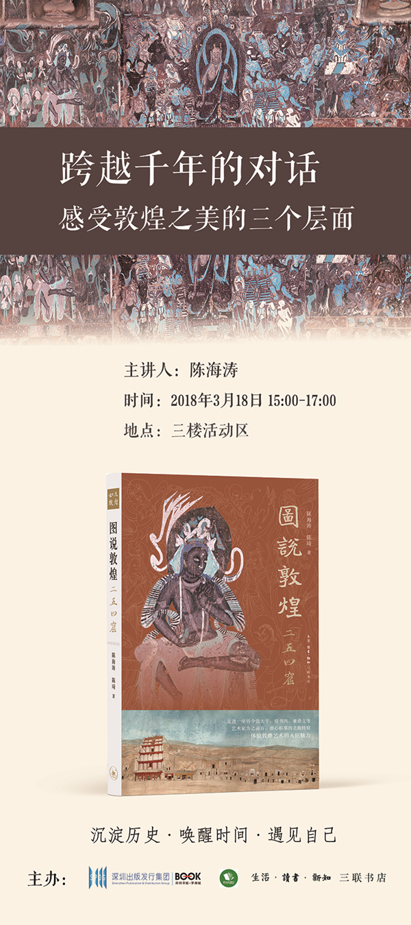 3月18日,《图说敦煌二五四窟》的作者陈海涛,将通过二五四窟这样一个有代表性的个案,从“慈悲能承载”、“智慧能沟通”、“美能成就”三个层面,带领大家感受敦煌之美,唤醒观看壁画时眼中的光彩,领略这座曾令张大千、常书鸿、董希文等艺术家为之动容、潜心临摹的北魏特窟所散发的生生不息的永恒的艺术魅力。