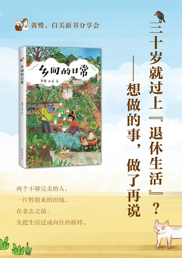 在不尴不尬的三十好几,黄鹭和白关却率先实现了我们的退休梦,过上了春耕秋收的田园生活。他们是怎么做到的呢?3月18日,他们会在上海分享记录“提早退休”生活的新书《乡间的日常》,如果你也做过田园梦,如果你也有梦却迟迟不敢去实现,就来见一见这两个三十多却还能像孩子一样大笑的青年吧!到时候你就会明白:三十岁,不是成长的终点,也不是衰老的起点,想要追梦,三十岁不早,更不晚。