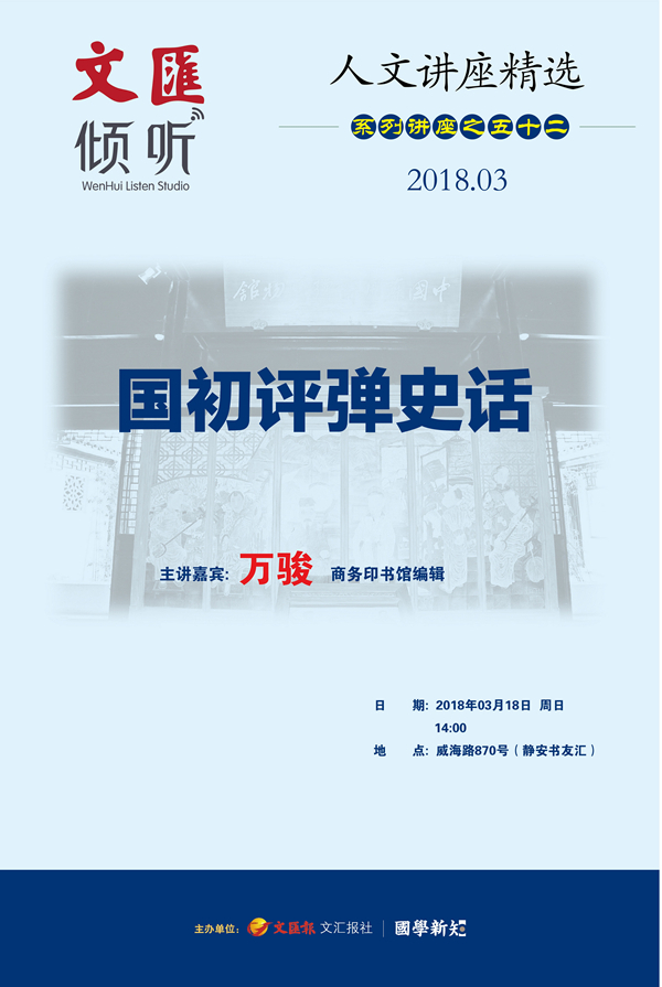 评话和弹词均以说表细腻见长,吴侬软语娓娓动听;演出中常穿插一些笑料,妙趣横生。弹词用吴音演唱,抑扬顿挫,轻清柔缓,弦琶琮铮,十分悦耳,经过历代艺人的创造发展,曲调流派纷呈,风格各异。本次讲座,我们邀请到商务印书馆编辑万骏为大家分享“国初评弹史化”。
