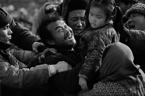 许金晶:《村戏》整部电影都是以黑色基调为主,只是在男主角奎生回忆女儿被自己噎死的场景时,采用了彩色处理。这种黑色与彩色之间不同色彩的处理方式,有着怎样的用意?