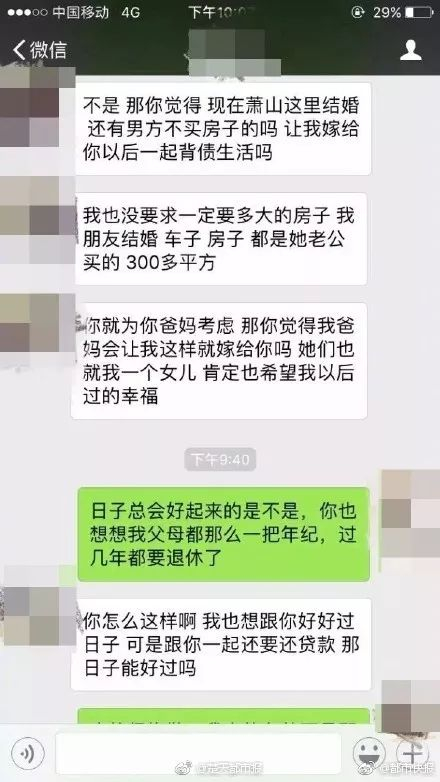 近日有网友发帖说和自己好了3年的女友,在快要结婚的时候,因买房的问题,双方闹起了矛盾。男方说家里压力大,希望先付个首付。而女方坚持要男方全款买房,不想婚后和男方一起还贷款。你怎么看?