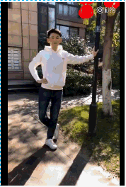 一只手扶着墙/杆子/树等