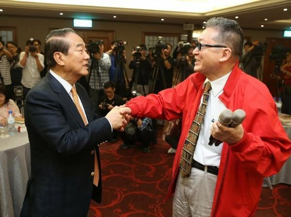 2015年4月,亲民党主席宋楚瑜和李敖。 台海网 资料图