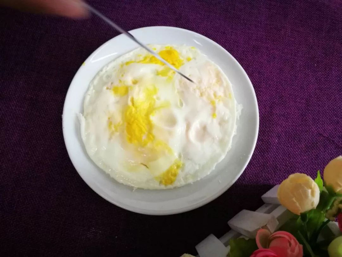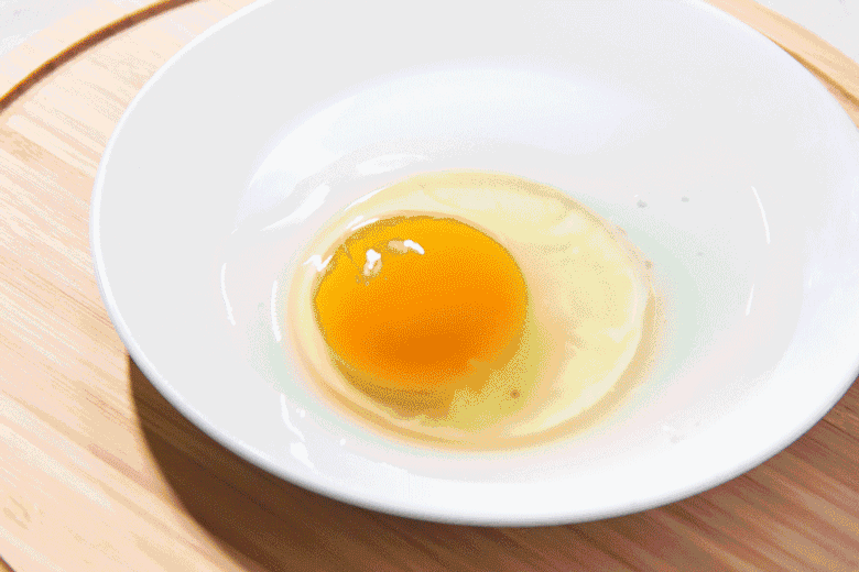而右边的鸡蛋,蛋黄被裹在蛋清中