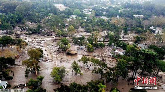 资料图为航拍加州蒙特西托地区的泥石流受灾情况,小镇变成一片泥沼。
