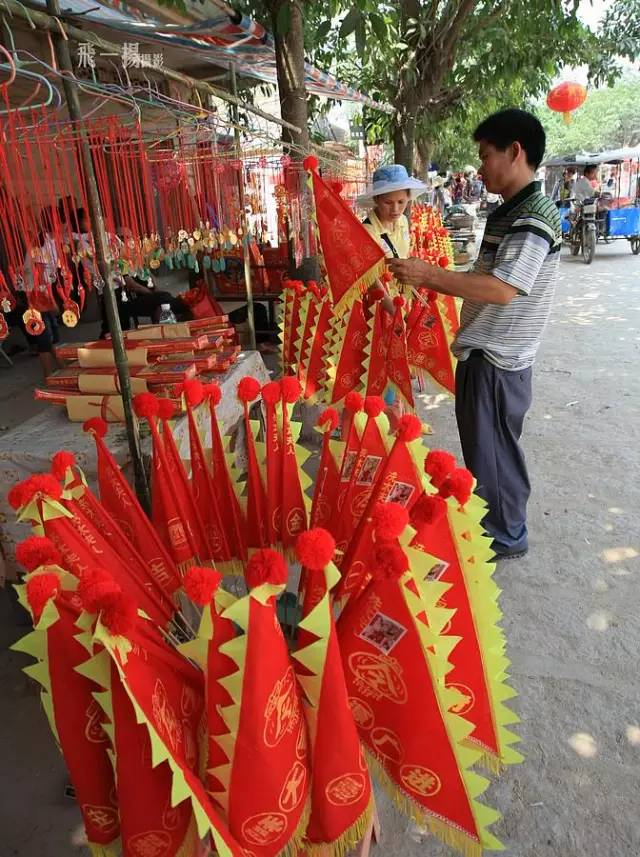 军坡节期间,新坡镇每家每户的门前都会插一面令旗,即“百通令旗”。相传古时梁沙坡附近有座山,进山者多迷失方向,群众以为有鬼。冼夫人得知以后,就给进山者一面“出入平安”的小旗,让他们进山逢小丘插上一支,群众终于能顺利返回。虽然岁月流淌,时代变迁,可是每年这个时候,这里的村民都习惯在家里插上一杆令旗,以求“家人平安,财源广进”。