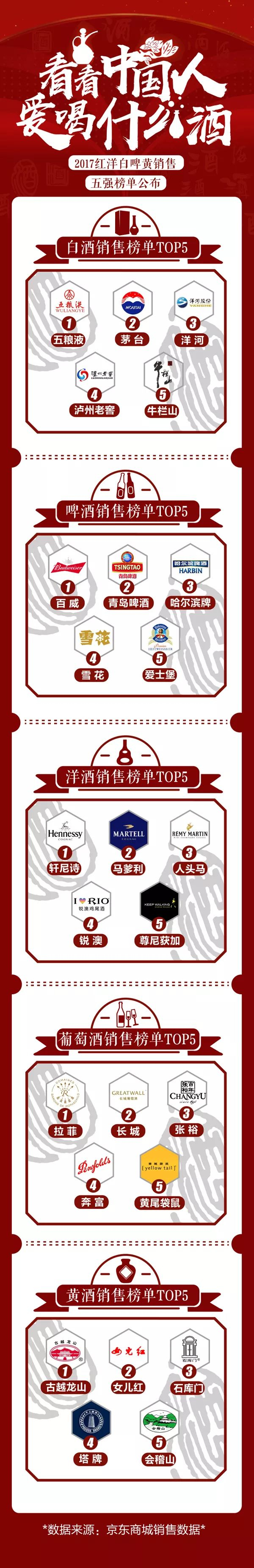 看看中国人爱喝什么酒 2017红洋白啤黄销售五强榜单公布