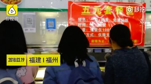 日前,福建农林大学为了回馈学生,推出了五元套餐:一荤两素,米饭管饱。