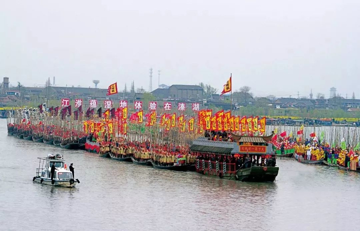 4月6日:早餐后,前往国家AAAAA级湿地公园【溱湖湿地风景区】,乘船进入溱湖湿地核心区域:观会船节盛大民俗演出,糜鹿故乡园、湿地风光、风车岛、古农具展示、湿地精品园、珍禽园、湿地茶楼等。