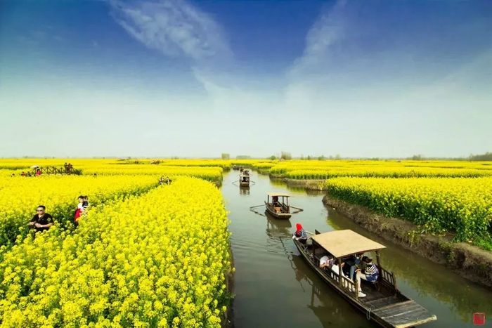 4月5日:早抵达泰州市火车站后, 赴兴化(车程1小时),游览【千垛菜花风景区】(游览时间约半天),登20米高的观光瞭望台,极目远眺,每当春暖花开,满眼尽是金黄色的菜花,形成一道独特的自然风景,身临其境,心旷神怡,乘船(含游船)在小岛间穿梭,亲闻油菜花香等;尽情畅游花海之中,不禁让人惊赞“中国最美油菜花海”的壮阔景色。