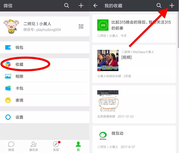 在PC端微信的「收藏」里,点击「新建收藏」,进入笔记界面: