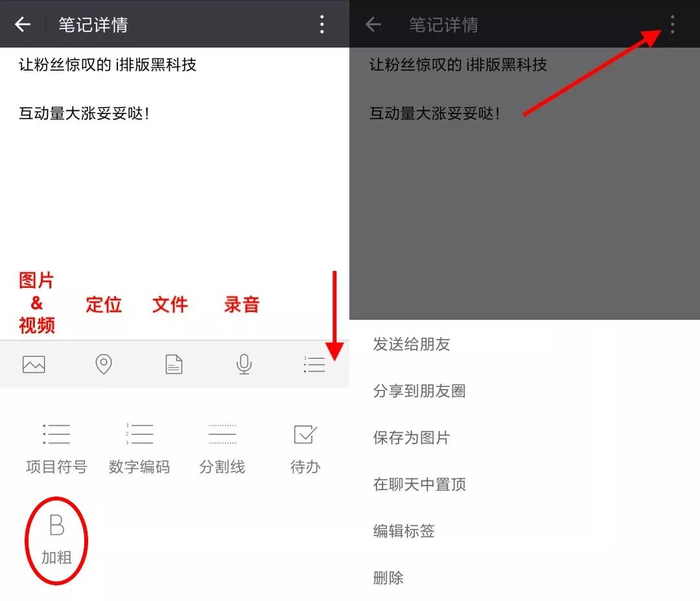 笔记里除了文字,还能添加图片、给文字加粗等等。