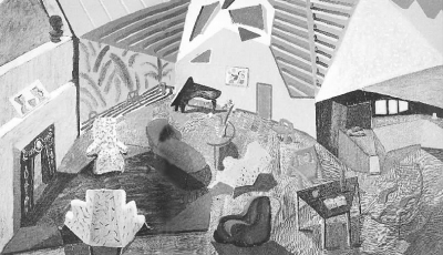 大型室内,洛杉矶(油画、纸本、墨水) 大卫·霍克尼(英国)