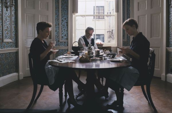 安德森导演作为一个美国加州出生的导演,向英国文化致敬,不仅展现了伦敦高级女装业优美高贵,也有些刻板保守的世界,而且将英国哥特文学的气质带了进来。这座乔治国王时代风格的裁缝铺,在维多利亚时代的精致浪漫背后,一种哥特式的神秘、阴暗与邪魅的气息蔓延开来,仿佛一座幽灵古堡。家族的秘密藏在各个角落,华丽的表象下是黑暗与爱在绝望和歇斯底里之间挣扎。