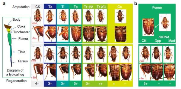 研究团队通过实验着重证明,Dpp通路在蟑螂断肢再生过程中对其伤口愈合和组织再生起到关键作用。