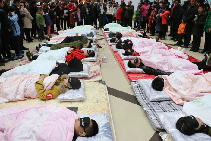 而此时,商场内人头攒动,人声鼎沸,现场还在进行着热烈的睡眠知识问答和专家现场义诊,在如此嘈杂的环境和众目睽睽之下入睡,对选手来说绝对是巨大的考验。