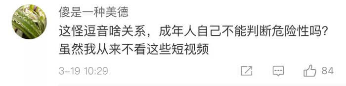 此外,我们已经着手在产品功能上做出改进。针对这类视频,抖音已经在开发相关产品功能,将专门上线“风险提示系统”,对于参与程度高、受到用户喜爱,同时又存在潜在风险的挑战和动作,产品将在显著的位置予以风险提示,告知参与模仿的用户量力而行,做好防护工作。
