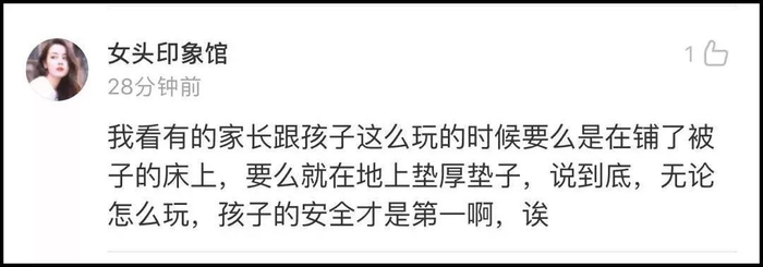 对于家长模仿视频,网友又急又气:玩归玩,孩子的安全才是第一位的!
