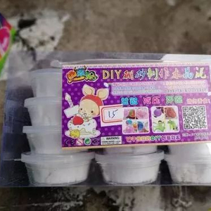 在一家商店,制作史莱姆的硼砂装在一个透明的小塑料盒中,一盒2元钱。包装盒上贴着一个图片,标有韩文和条形码,没有产品说明,也没有生产厂家、生产日期等。