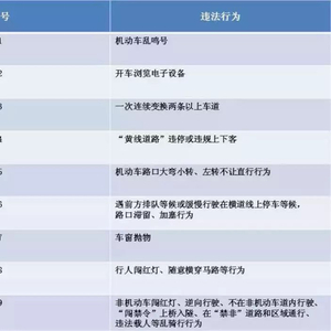 据第4焦点上海交警微发布最新消息,“机动车乱鸣号”、“开车浏览电子设备”、“一次连续变换两条以上车道”等九大类交通违法在部分外省市来沪人群中高发。
