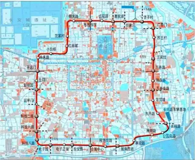 地铁8号线是西安轨道交通线网中唯一环线,线路全长50.1km,共设车站35座,其中换乘站17座。
