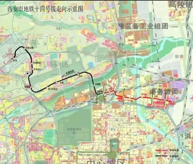 地铁14号线一期工程北客站到贺韶村段为东西走向,规划东端起点为国际港务区,跨灞河后抵达北客站,待机场线开通运营后与其贯通。