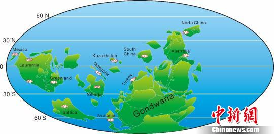 寒武纪微网虫骨片化石的古地理分布(修改自Torsvik and Cocks, 2013b; Yang et al., 2015)。南古所 供图