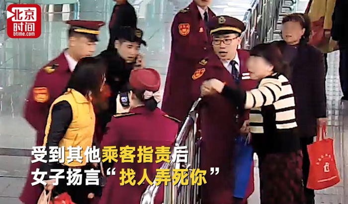 当班站务人员劝说朱某,要求其配合安检员的工作,朱某反而称安检员、站务员都在为难她、欺负她,还扬言:“黑白两道都有熟人,信不信找人弄死你们!”