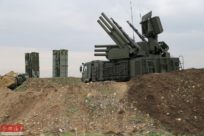 实际上在2012年6月,叙利亚政府军就曾宣称使用“铠甲-S1”防空系统在拉塔基亚附近击落了一架土耳其空军的RF-4侦察机。但真正令该系统名声大噪的还是俄军防空部队在近几年叙利亚内战中的出色表现。截至2017年9月,俄军“铠甲-S1”已击落过多架外军无人机,其中包括美军的RQ-21A“黑杰克”无人机(被“铠甲-S1”从19千米外击落)和以色列的“苍鹭”无人机。图为俄军“铠甲-S1”为驻叙的S-400远程防空导弹系统提供警戒。