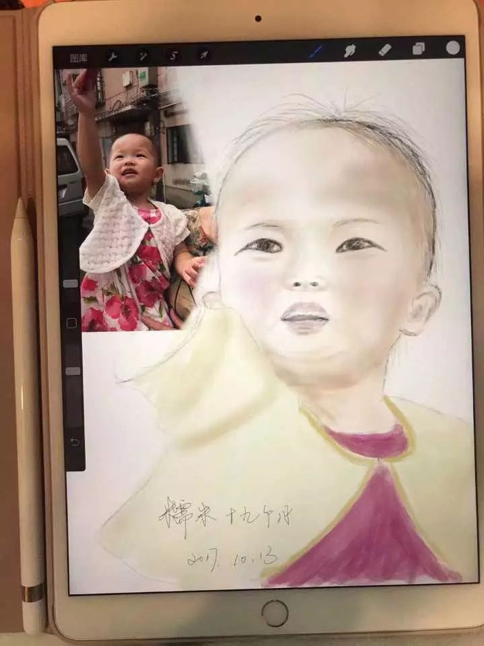 以前汪艇也不会画画,工作以后自己去拜师学习,刚开始学的是油画,后来怀孕之后学习了水粉画。在女儿8个月的时候,她第一次尝试动笔,当时画的特征还不明显。但第一张画出炉之后,看着跃然纸上的女儿,汪艇说:“感觉很好,很有意义!”