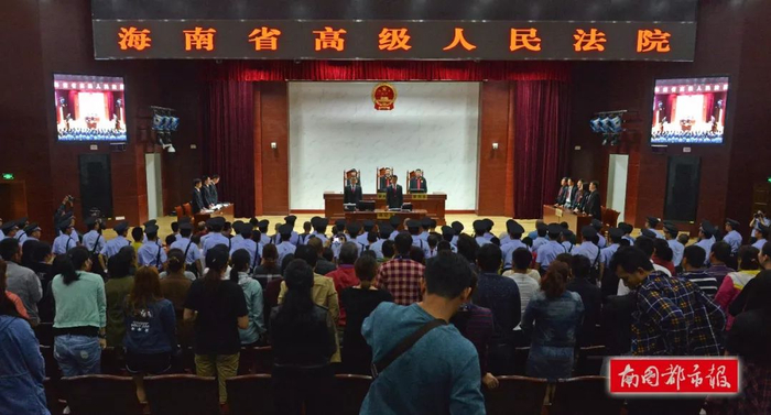 五指山市“月亮帮”特大涉黑犯罪案二审现场。