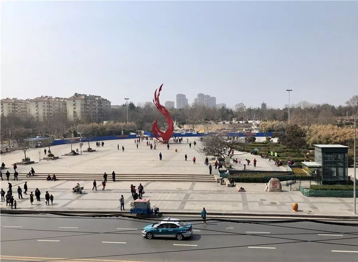 不远处目光所及的市政府和五四广场,