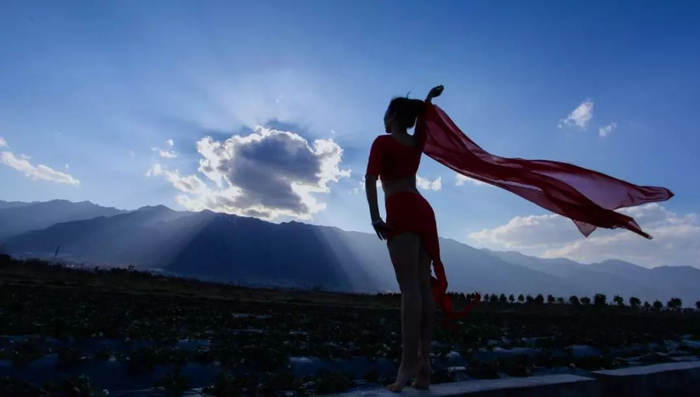 程丹以一个舞者的姿态,致敬夕阳。