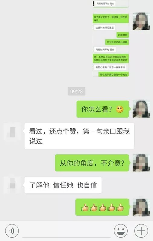 随后他用了九个字表达了对两人如此聊天的看法:了解他、信任她、也自信。