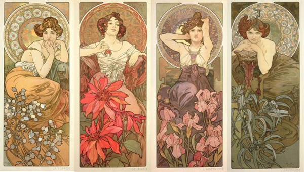 如果今天媒体的美编们要拜一位祖师爷的话,最好还是去拜一拜阿尔丰斯·穆夏(1860-1939)吧。作为一个一百多年前的美工,他愣是混成了大师。2017年11月25日到2018年03月25日,他的画就在广东省博物馆展出。