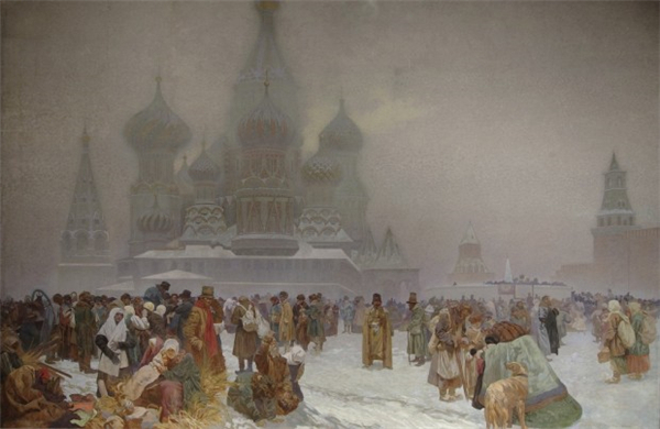 还有描述其他斯拉夫民族的画作,比如下面这幅《斯拉夫史诗之十九 俄罗斯废除农奴制 》,描绘的就是沙皇俄国废除农奴制的情景。