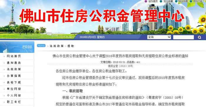 近日,佛山市住房公积金管理中心发布关于调整2018年度我市租房提取和无房提取住房公积金标准的通知