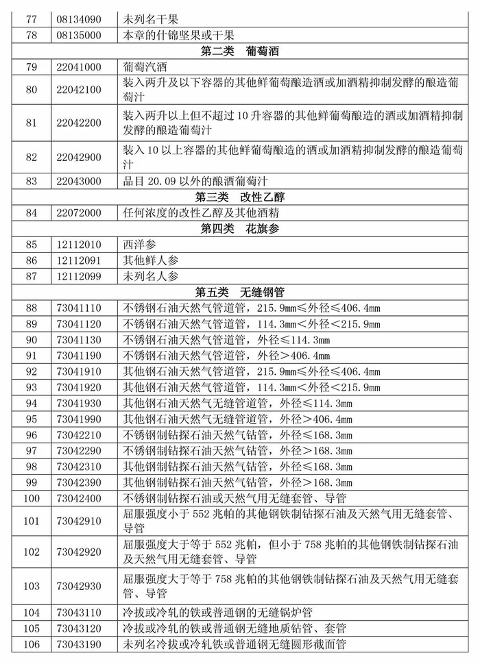 ◆ 该清单暂定包含7类、128个税项产品,按2017年统计,涉及美对华约30亿美元出口,详单见下