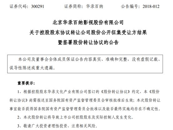 在发布控股股东拟转让股份的消息两个多月后,华录百纳(300291,SZ)终于敲定了接盘方。