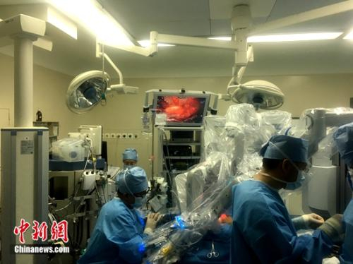中新网北京3月22日电 20日在北京和睦家医院手术室,北京大学肿瘤医院头颈外科主任、北京和睦家医院头颈外科首席专家张彬操作达芬奇机器人,顺利完成了一名患者的舌根癌切除手术,这是和睦家医院利用达芬奇机器人所完成的第200例手术。