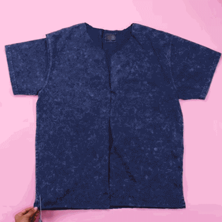 T恤大了剪一刀,就变成时髦开衫啦!!T恤摊开,从中间剪一个Y字形。