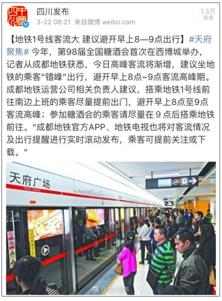 3月18日已正式开通试运营的地铁一号线三期,乘坐地铁前往西博城非常方便。