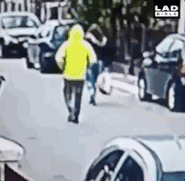 当劫匪走远后,狗狗还回头看了女孩一眼。