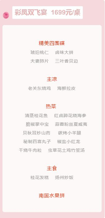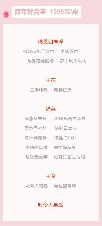 2018年5月-2018年10月婚宴售价为:1699元+10%起