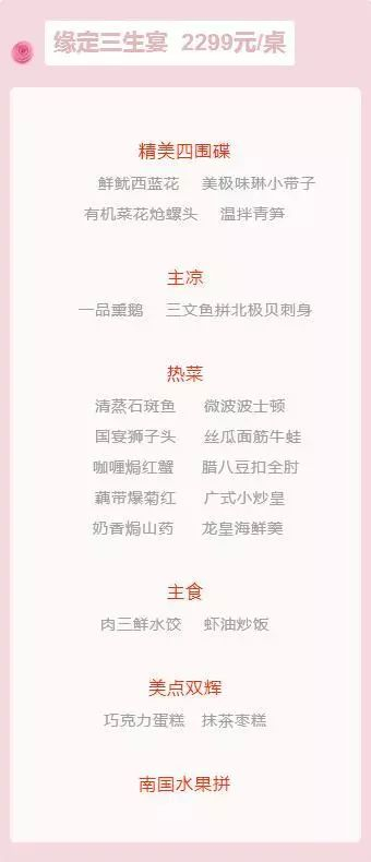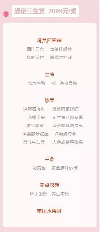 2018年1-4月/11-12月婚宴售价为:1099元+10%起