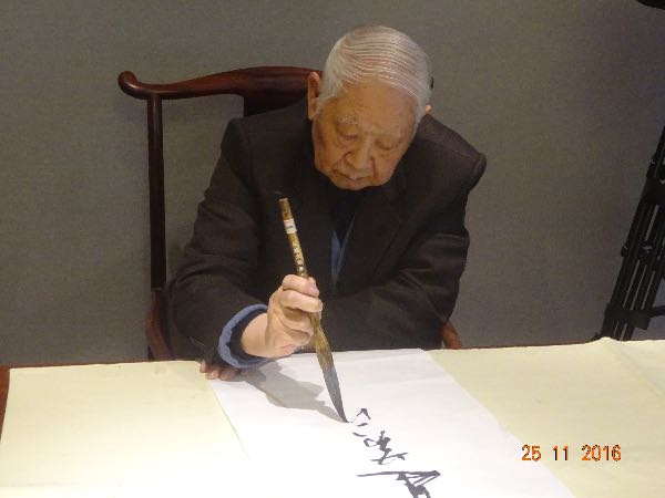 洛夫在上海书法展挥毫