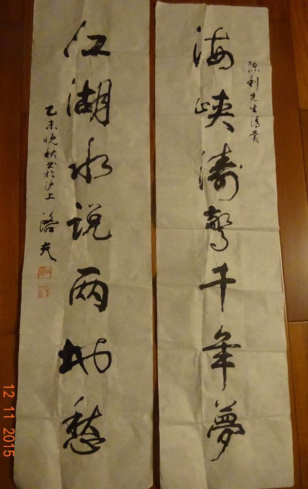 洛夫先生回到台湾后很快给我寄来了签名的照片和“假若你是钟声,请把回响埋在落叶中,等明年春醒,我将以融雪的速度奔回!陈利兄新春大吉”的书法条幅,果然很快我们又得以再次在上海见面,只是那时大陆人民无法前往台湾,其后几年只能靠书信通话往来。