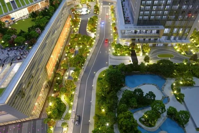 办公楼、购物中心、公寓都设有空中花园,三者之间又通过空中走廊连接,增强沟通性。