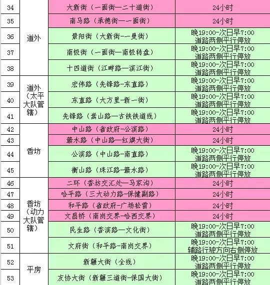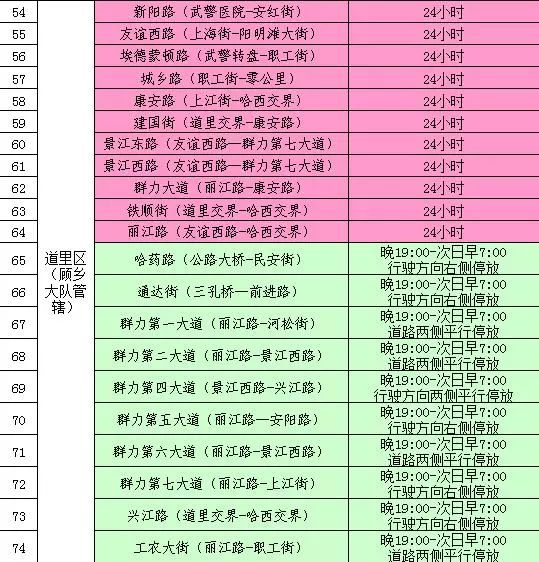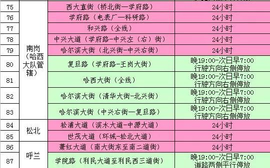 编者按:为进一步规范哈市道路停车秩序,交警部门针对目前全市道路通行状况,以及相关区域路段工程施工情况,对需重点优化停车及通行秩序的道路进行再次细化梳理,确定新阳路等87处路段为违停严管街路。其中,42处路段准许夜间限时停车。