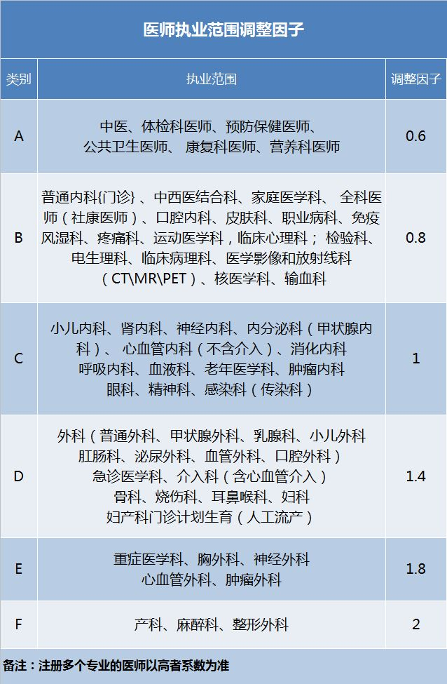 注册多个专业的医师,则以最高系数为准。